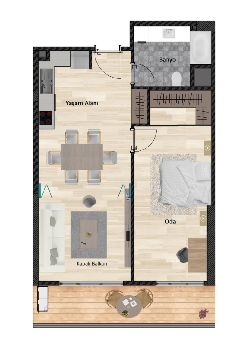 В продаже квартира 1+1 от застройщика в сданном комплексе, Эсеньюрт, Стамбул.