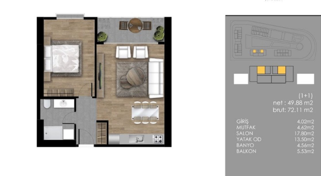 В продаже квартира 1+1 от застройщика, Эсеньюрт, Стамбул.