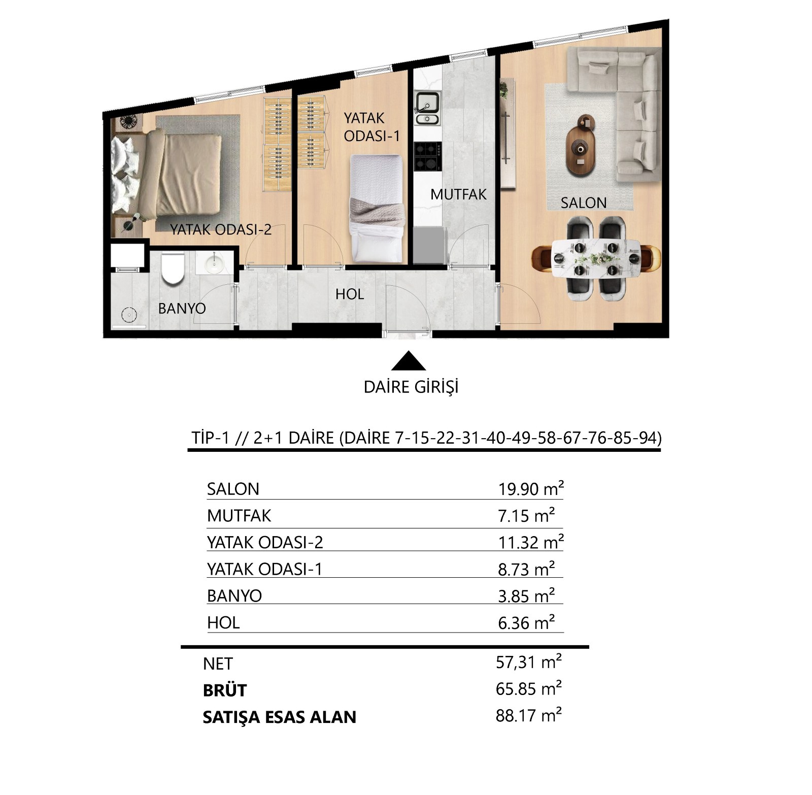 Транспорт: комплекс расположен рядом с автострадой TEM E80 и в нескольких шагах от остановок автобусов и маршруток. 10 минут пешком до станции метро Yenimahalle (ветка M7), 12 минут на машине до Vialand, 28 минут на машине до аэропорта Стамбула.