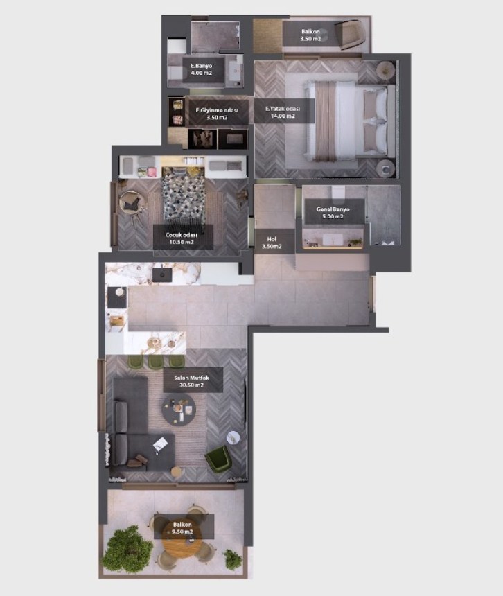 О районе: небольшой микрорайон, что входит в состав района Мезитли. Близость к районному центру позволяет пользоваться всеми преимуществами и инфраструктурой, но при этом проживать в тихом и спокойном районе. Популярность и потенциал района возрастет, после открытия аэропорта.