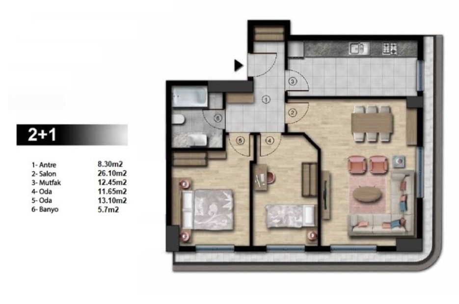 В продаже квартира 2+1 от застройщика, Газиосманпаша, Стамбул.