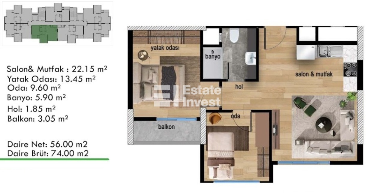 Площадь: 74 кв.м.