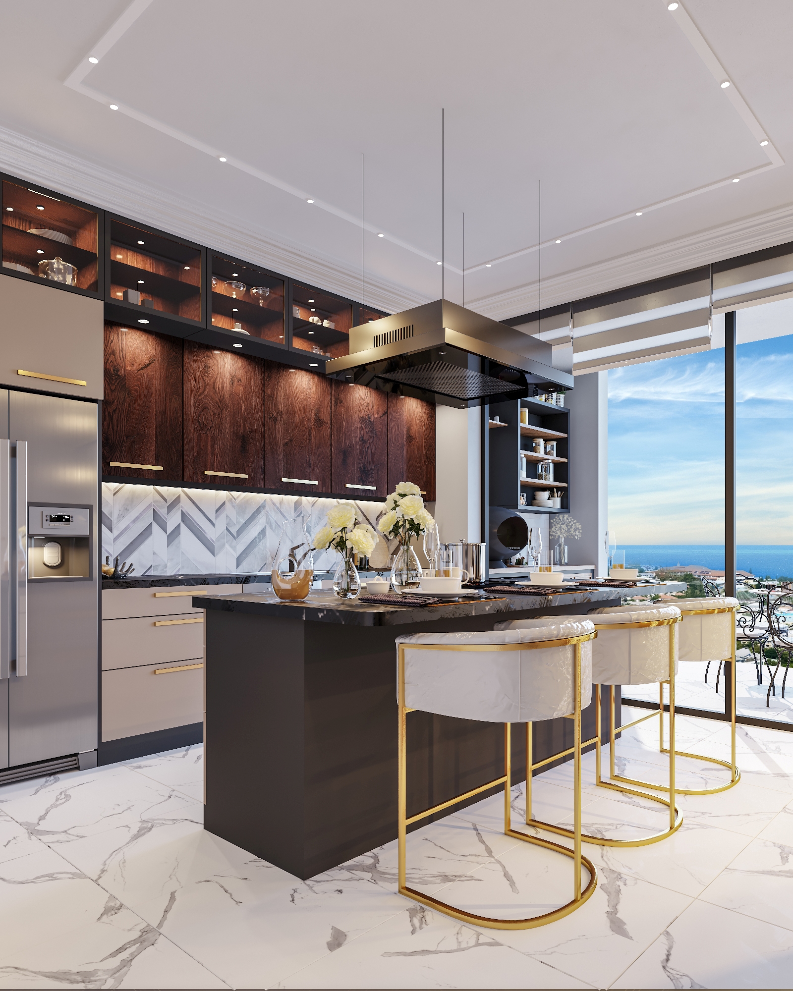 Формат: кухня, гостиная и 4 спальни.