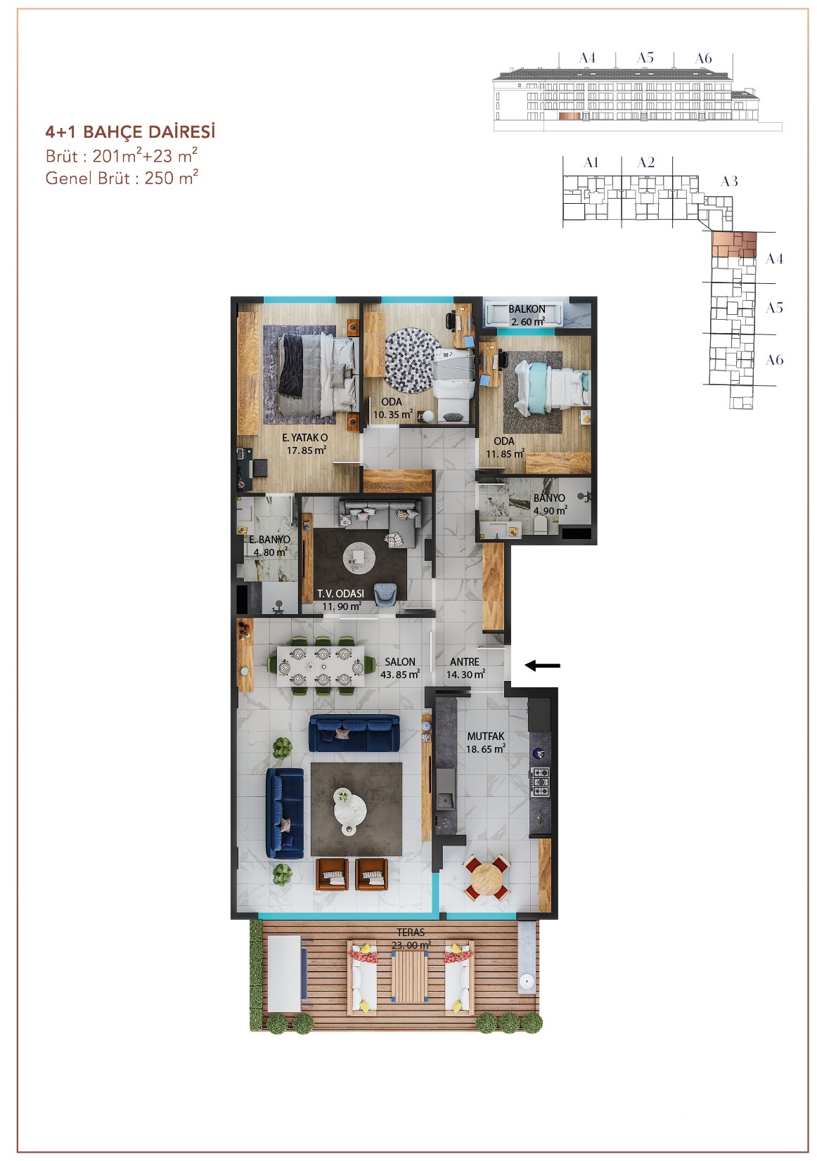 Площадь: от 250 до 260 кв.м. в зависимости от планировки.