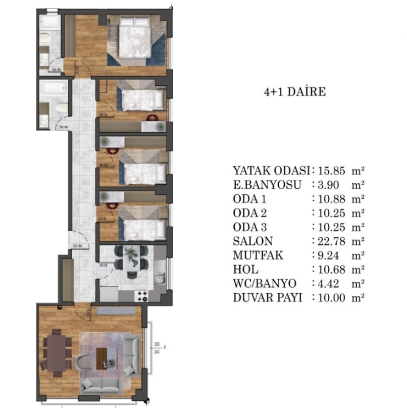 Автономная отопительная инфраструктура в каждой квартире, внутреннее светодиодное освещение, американская кухня, все кухонные шкафы изготовлены из высококачественного МДФ, столешницы из чимстоуна, ламинат на сухих полах, стильная, современная и качественная керамика на мокрых полах, стальная дверь, все межкомнатные двери деревянные филенчатые.