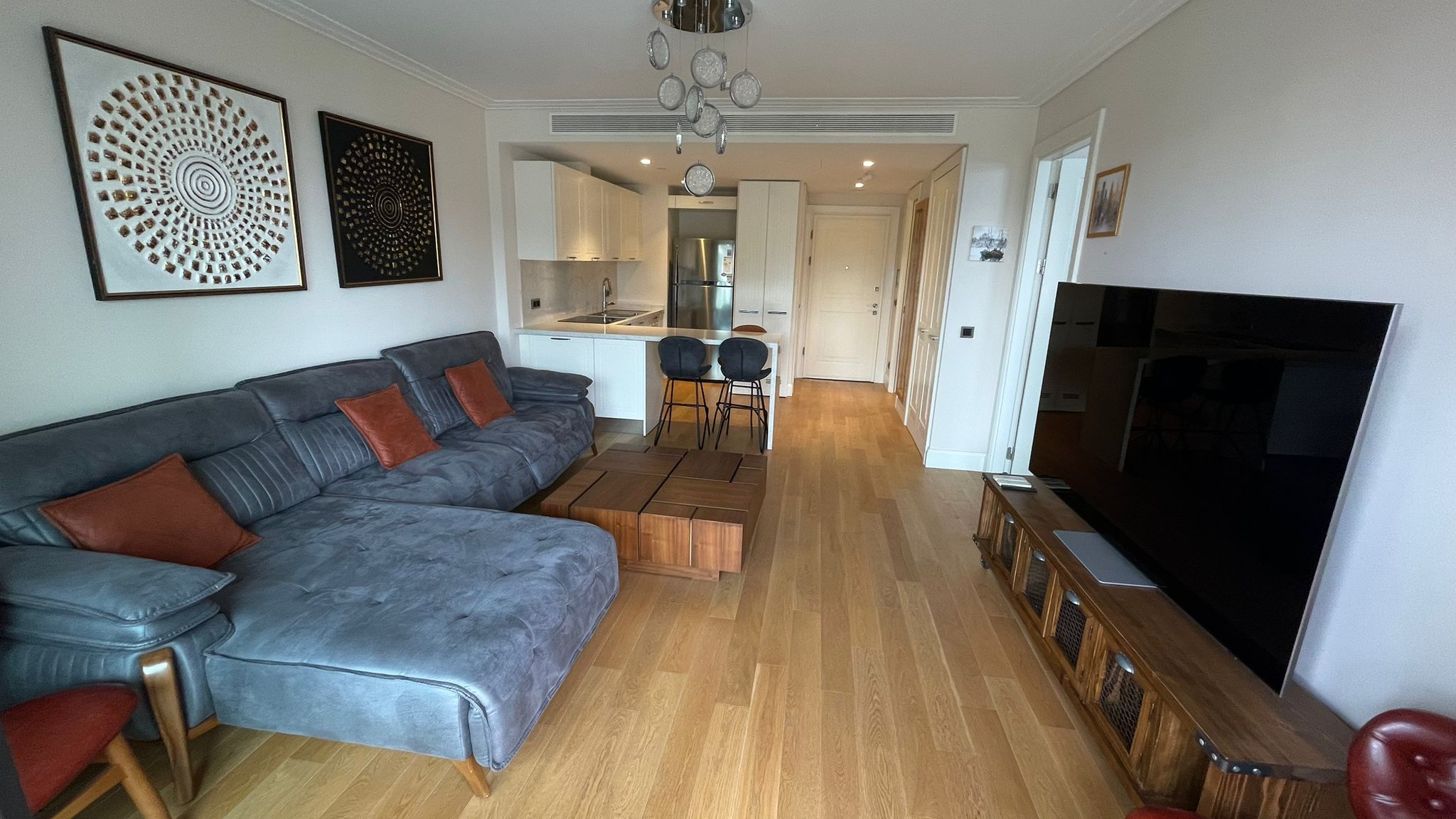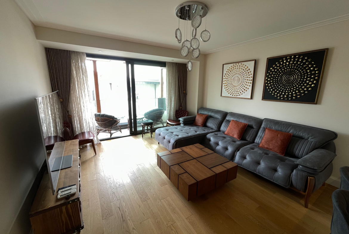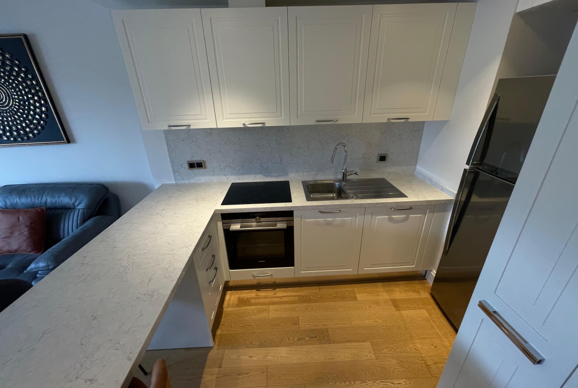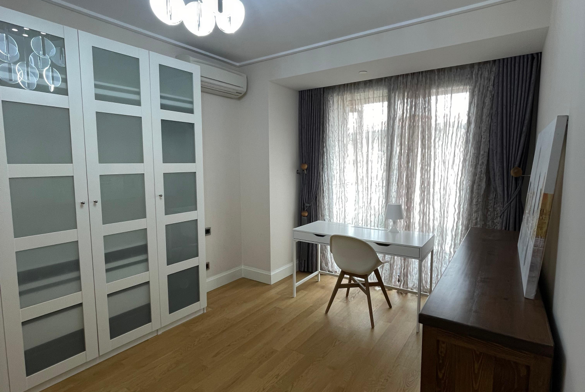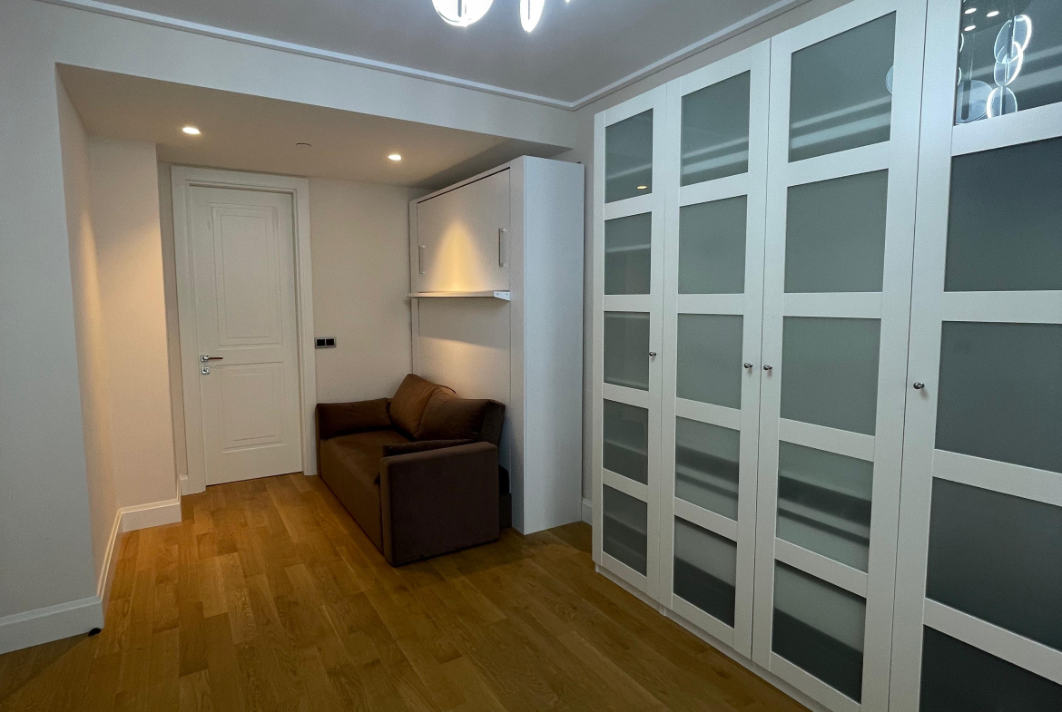 Квартира с чистовой отделкой c большой просторной гостиной, встроенным кухонным гарнитуром и укомплектованным санузлом. В квартире пол с подогревом. Bозможна продажа с мебелью. Дом расположен в коммерческом проекте и подходит как для жилого, так и для офисного использования.