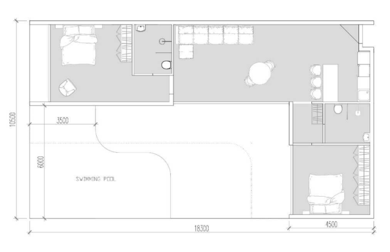 Формат: кухня-гостинная и 2 спальни + терраса.