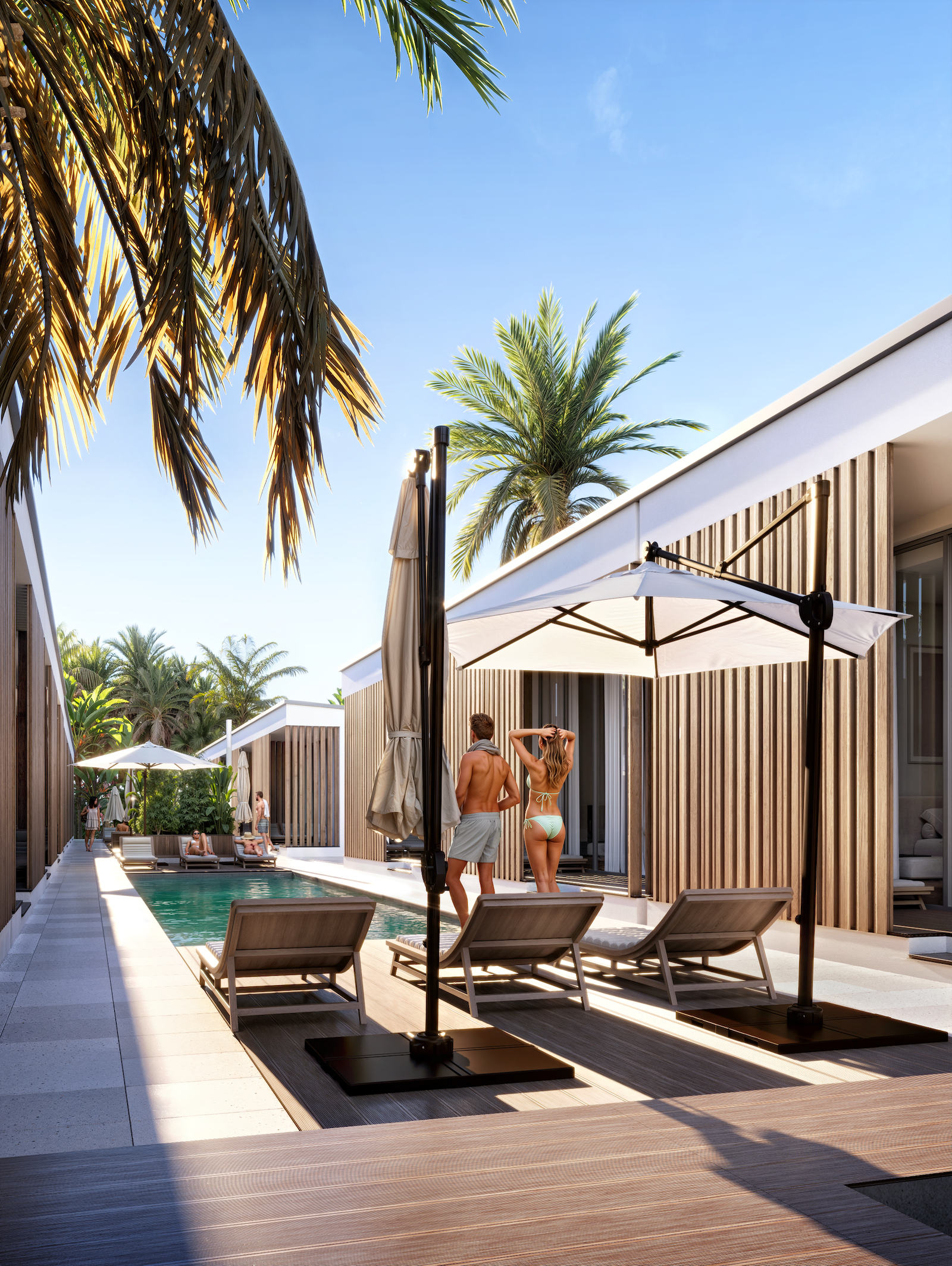 Инфраструктура комплекса: круглосуточная ресепшн, консьерж-сервис, аренда скутеров, коворкинг, тренажёрный зал, йога-центр, джус-бар, итальянское кафе.