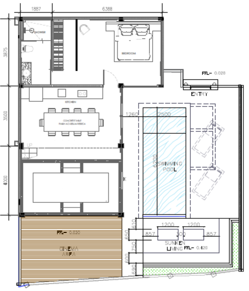 Инфраструктура комплекса: сад, кухня, лаунж зона, бассейн, смотровая площадка.