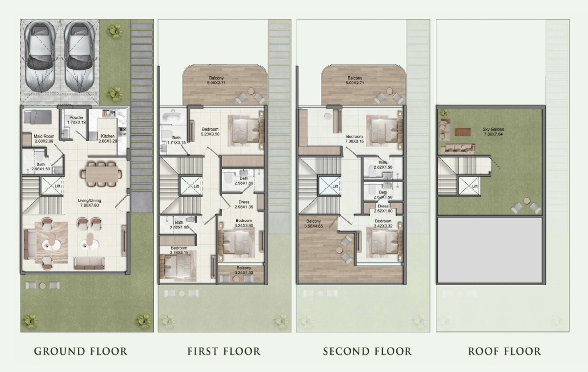 Вилла 5 br + maid, ЖК GREENZ BY DANUBE, Academic City, Дубай
