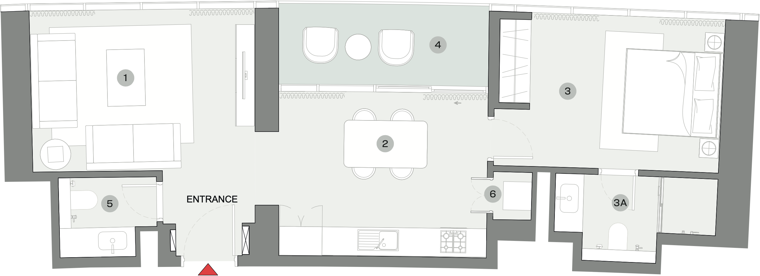 Her daire, özel tasarımı ve yüksek kaliteli malzemelerin kullanımıyla öne çıkıyor. Banyolar ve mutfak tezgahları mermerle kaplanmış, bu da mekanlara şıklık katıyor. Mutfak, yemek pişirme sırasında maksimum konfor ve rahatlık sağlayan modern ev aletleri ile donatılmıştır. Ayrıca, her dairede gömme mobilyalar bulunmaktadır.